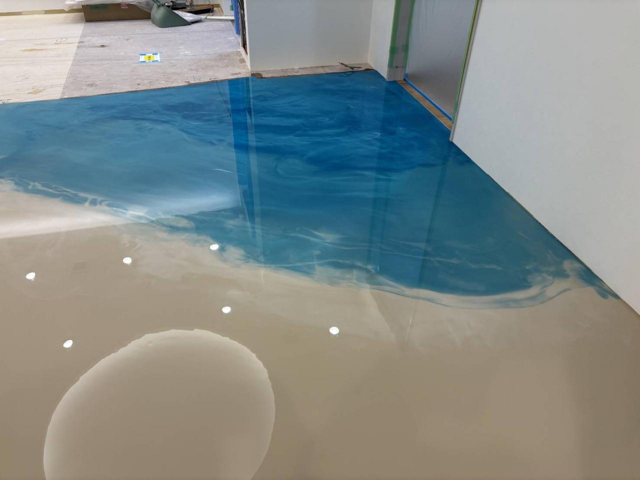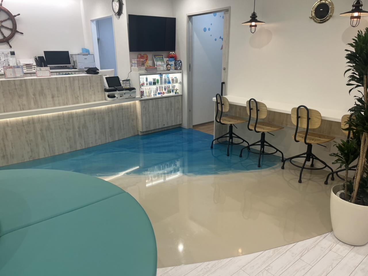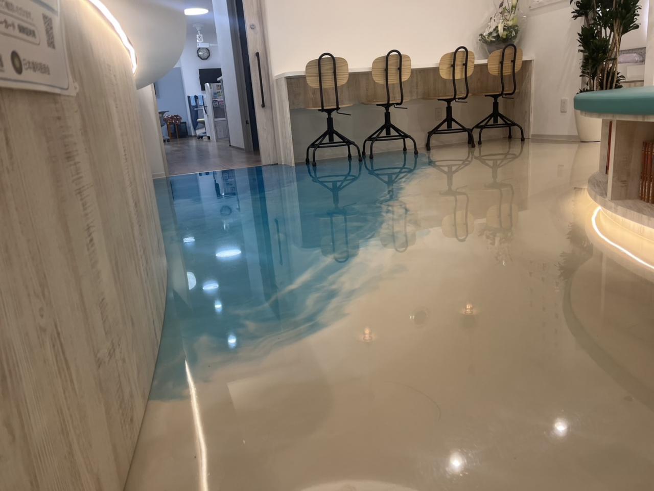 某クリニックにてビショットシャイニー施工。御施主様はサーフィンがご趣味とのことで海をイメージして欲しいとのご要望でした。1発仕上げ勝負なので、事前にイメージなど御要望を確認し施工しました。